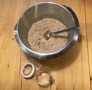 - Nach 8-10 h ist der Sauerteig fertig zum Verbacken. Erkennen kann man das am Blasenwurf, der sich unter der Oberfläche gebildet haben soll. Von diesem Sauerteig 2 EL in ein sauberes Einmachglas füllen, verschließen und in den Kühlschrank stellen. Dies ist unser Anstellgut für die nächste Runde.