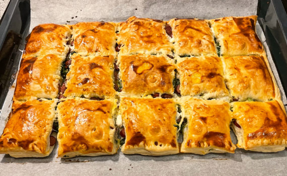 Kleiner Abendbrot-Snack schnell gemacht, gerne auch zur Resteverwertung Kleinigkeiten und Snacks Blätterteigkissen pikant gefüllt