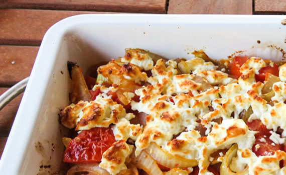 Sommerlich leicht und schnell gemacht. Der Schafskäse zum Überbacken gibt Pfiff. Aufläufe Gemüse und Veggie Tomaten-Zwiebel-Gratin